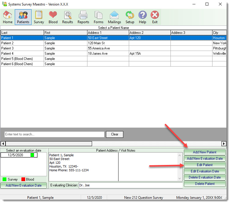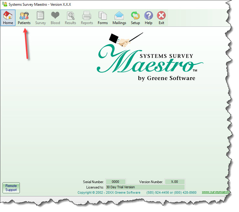Adding a patient for the on-line (Internet Entry) Systems Survey is very simple. You completely control which patients are able to login to your internet account - all within your copy of Maestro. There is never a reason to call Greene Software to add, change or delete patients in you Internet account. Below are the screen shots for that setup.