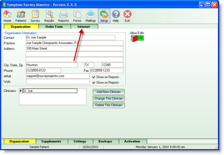 You can now setup patients (clients) for internet entry and retrieve Systems Survey answers, with a single click of the mouse - all within Maestro!