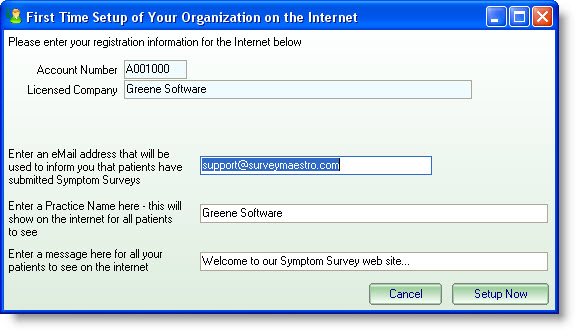 Setting up Maestro for the on-line (Internet Entry) Systems Survey is very simple. It's a one time process that you do within Maestro, on the PC designated to control all your on-line survey processes. Below are the screen shots for that one-time setup.