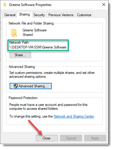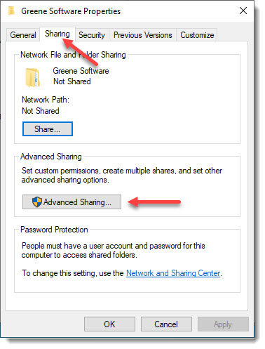 - Select the Sharing tab and click on the Advanced Sharing tab.
