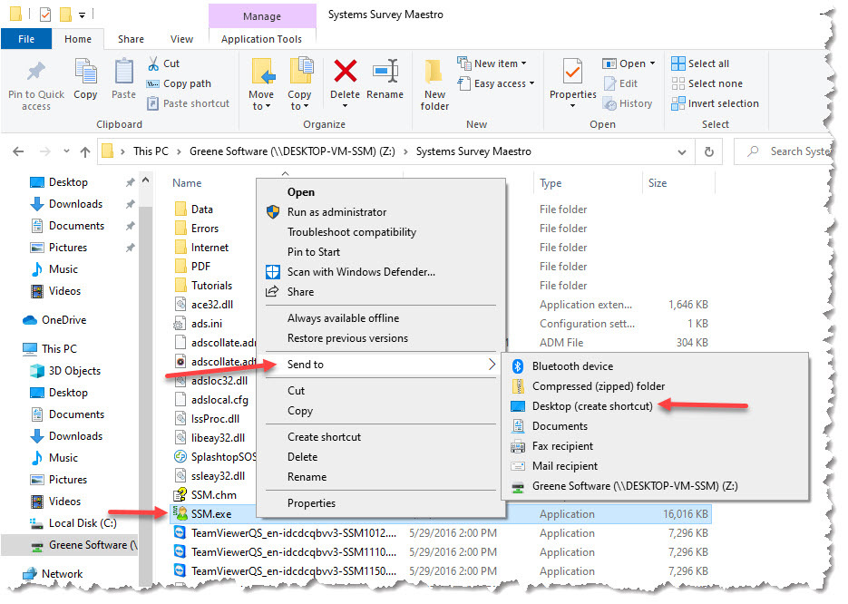 Find the file SSM (Application), right-click it, move the mouse of Send